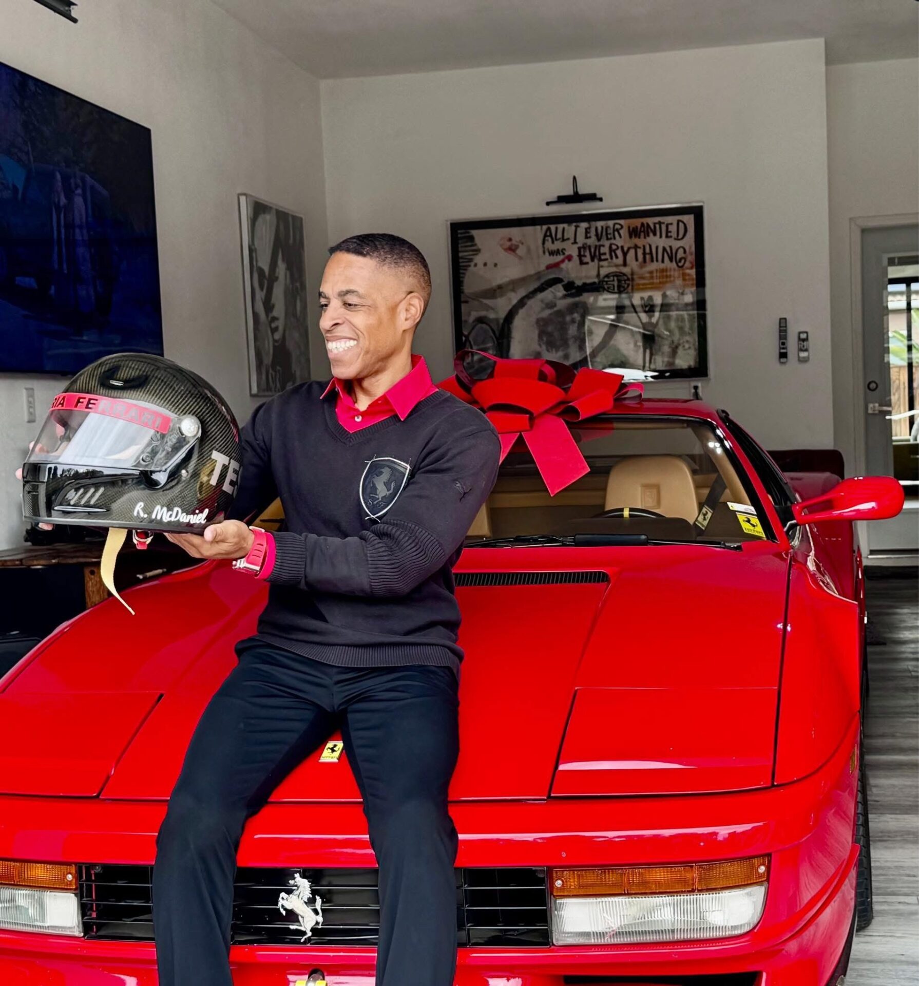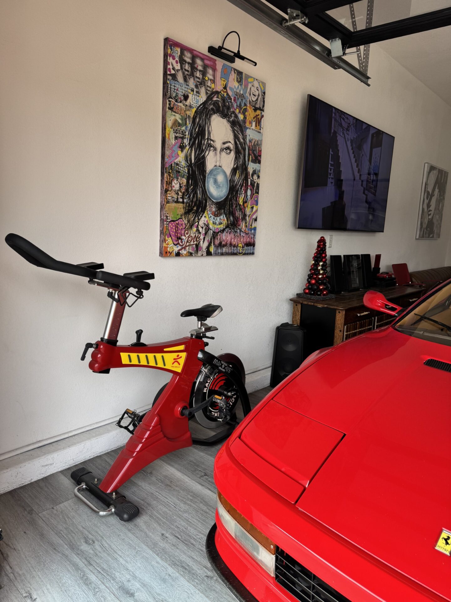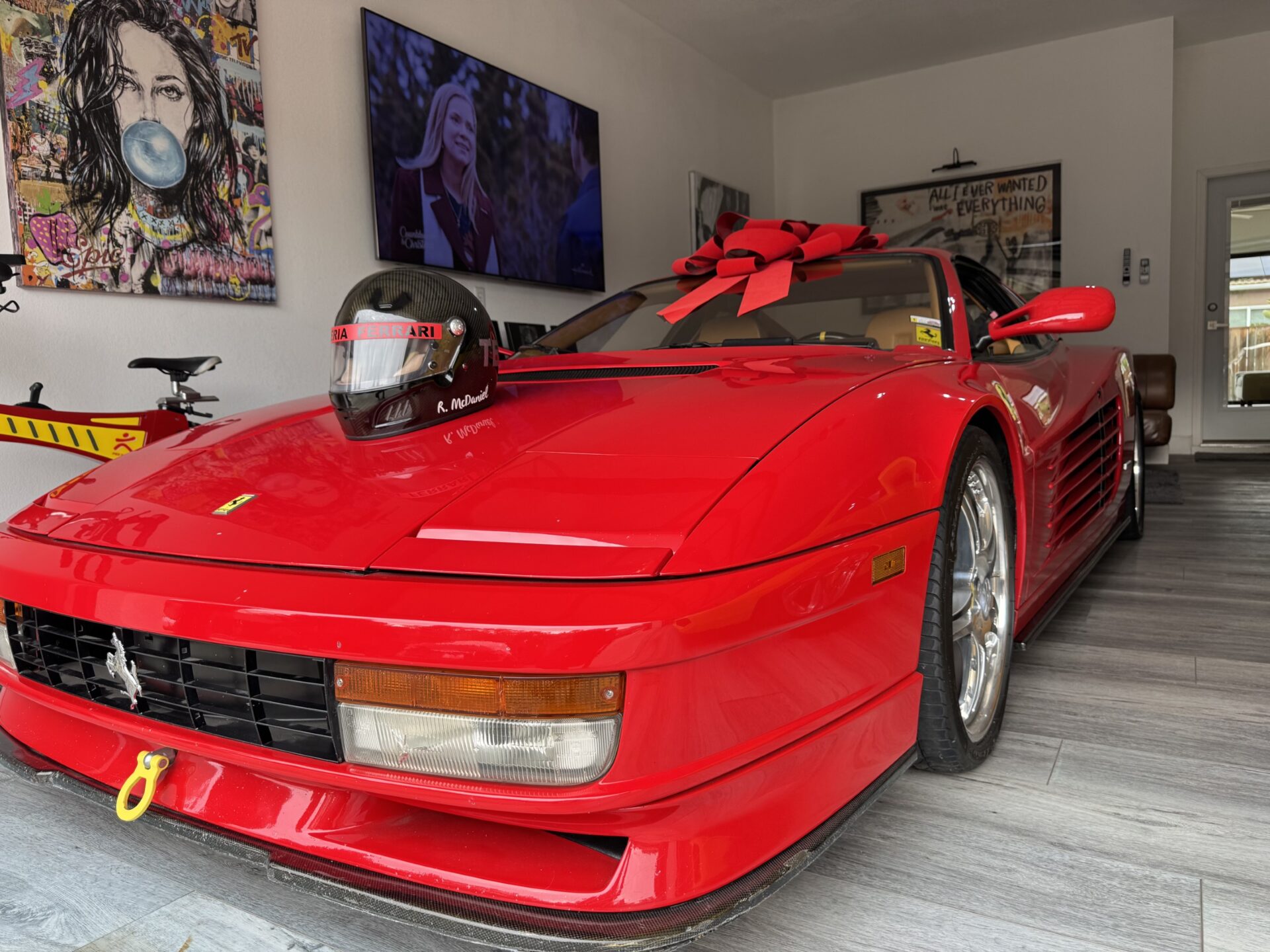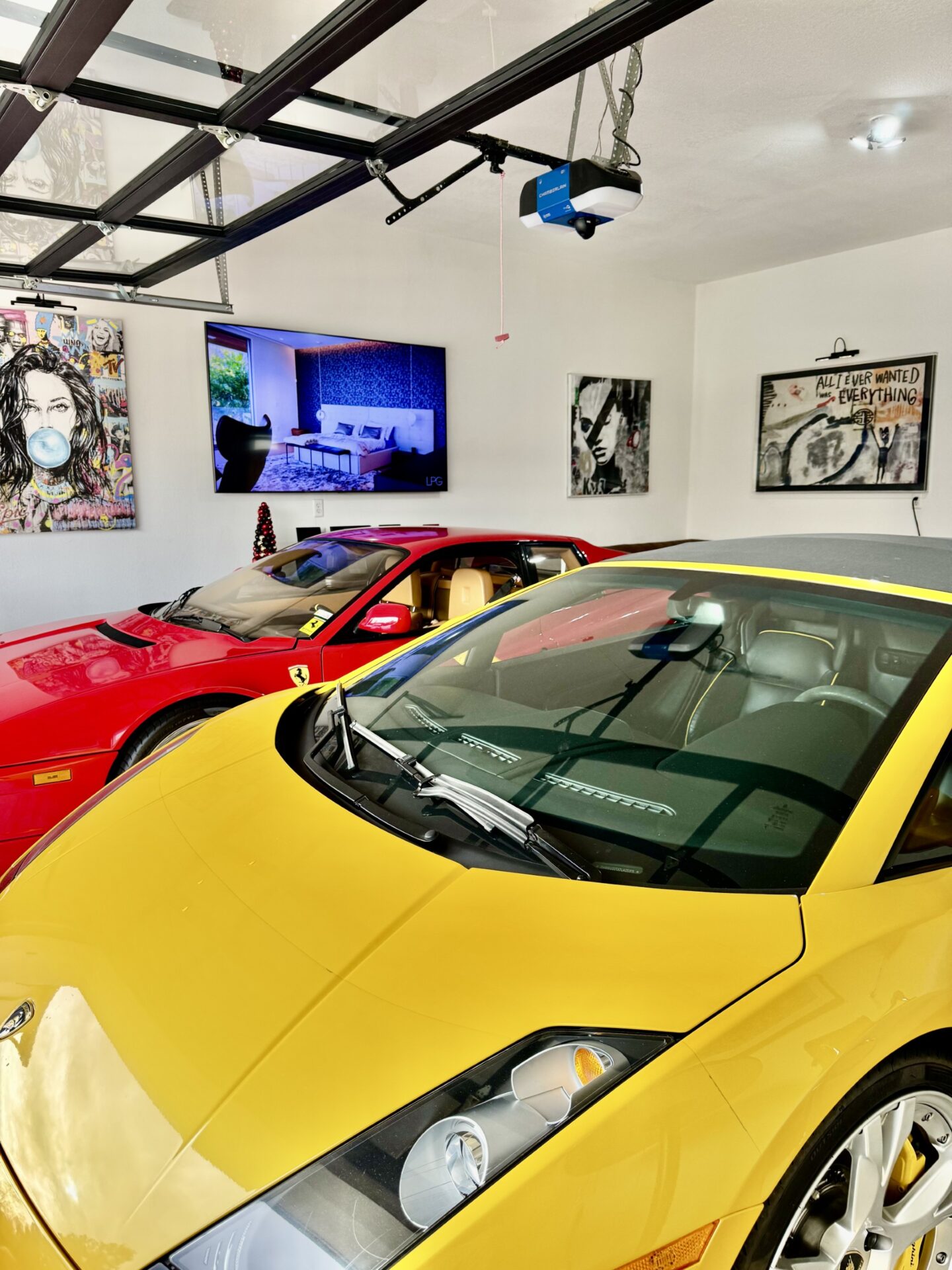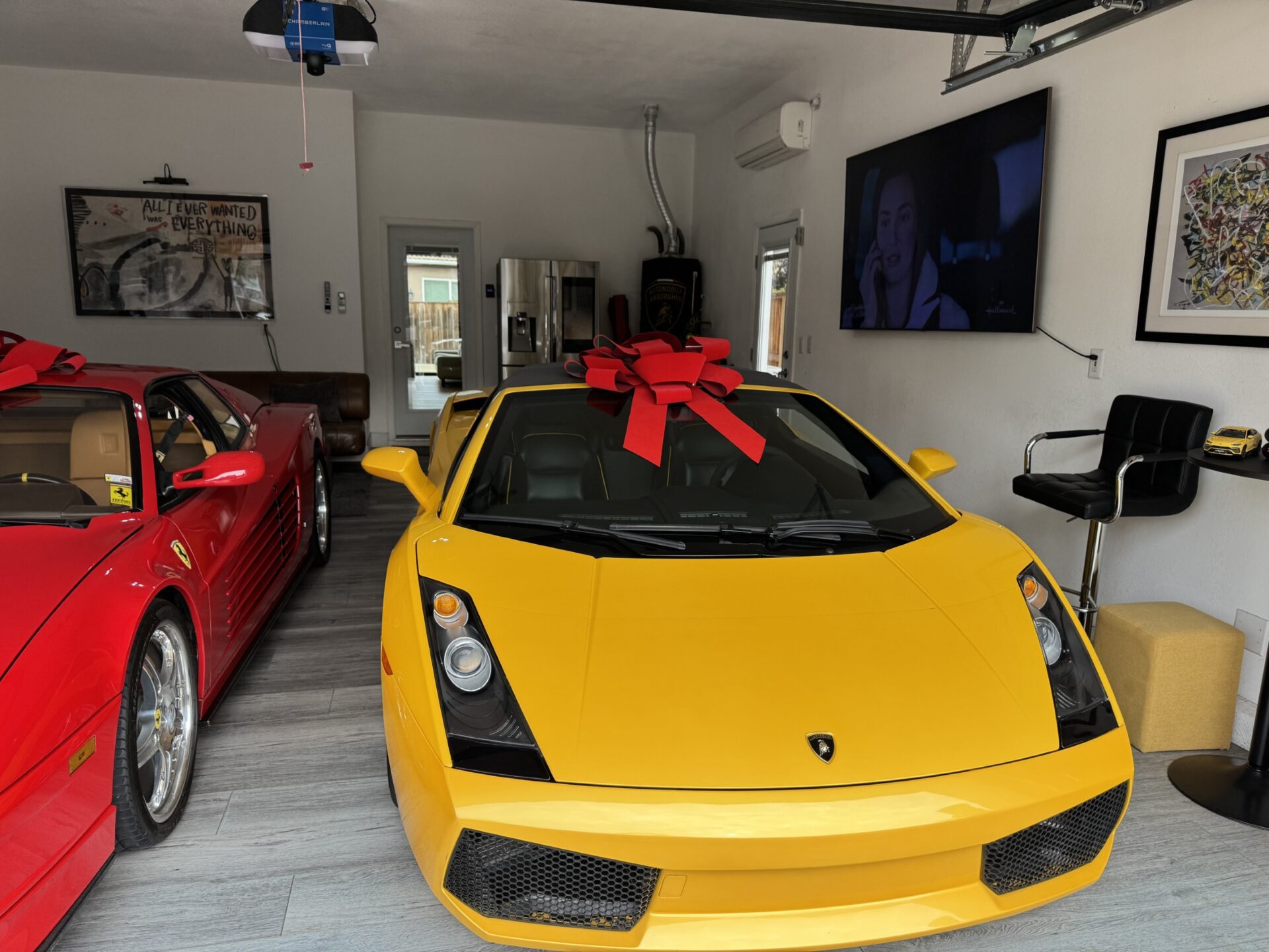 That said, Ron often sees people slowing or even stopping to get a better look at the house and the garage, especially during the Christmas season, when Ron decorates the house with special lights and large nutcrackers. He has large red bows that he places atop the Ferrari and Lamborghini, adding just another detail to the festivities.