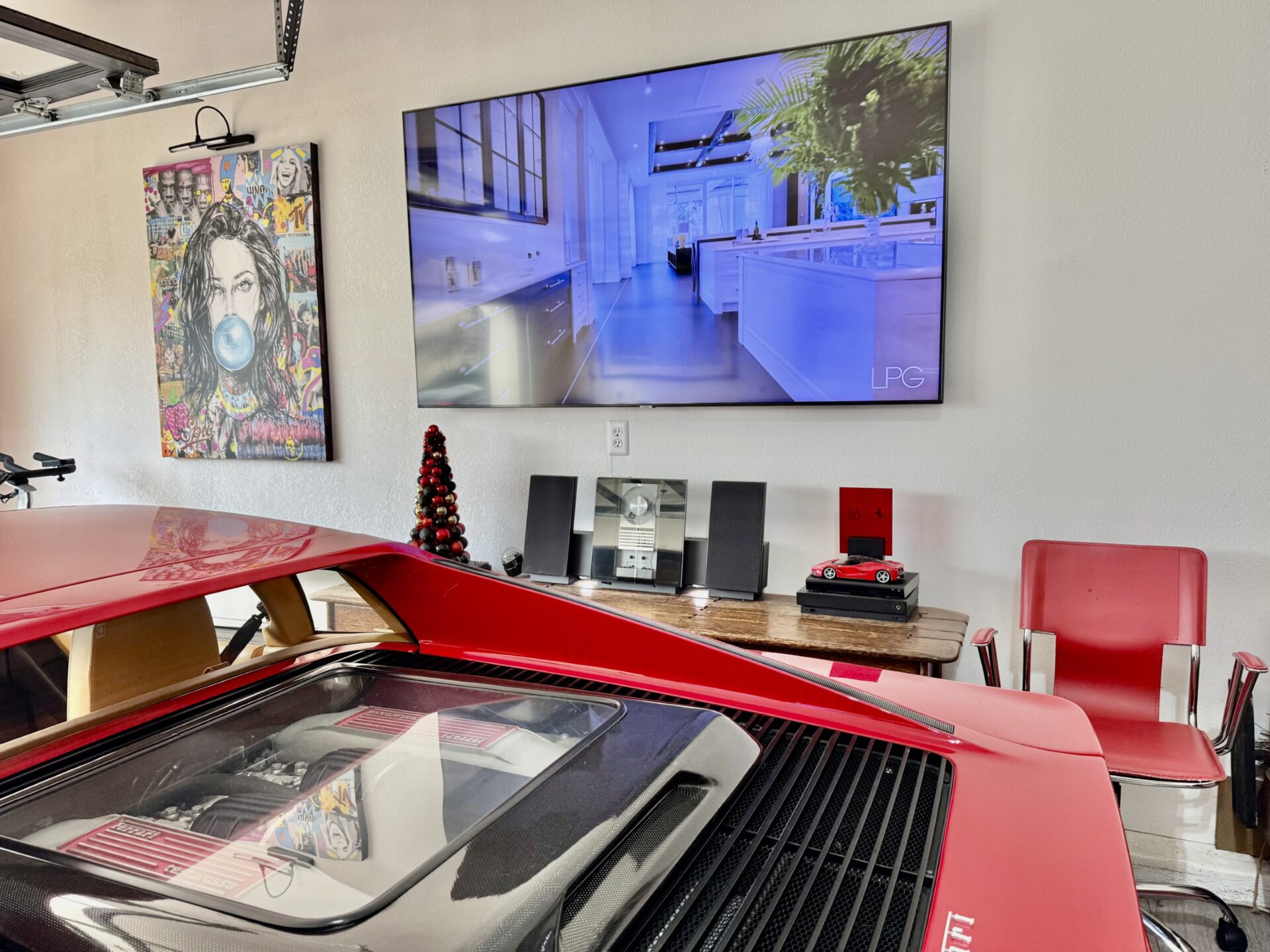 “Bang & Olufsen items are displayed throughout my home serving as functional pieces of art,” he said. “Having been a Bang & Olufsen collector for many years, there was no question I would choose that brand to incorporate into my Garage Lounge.”