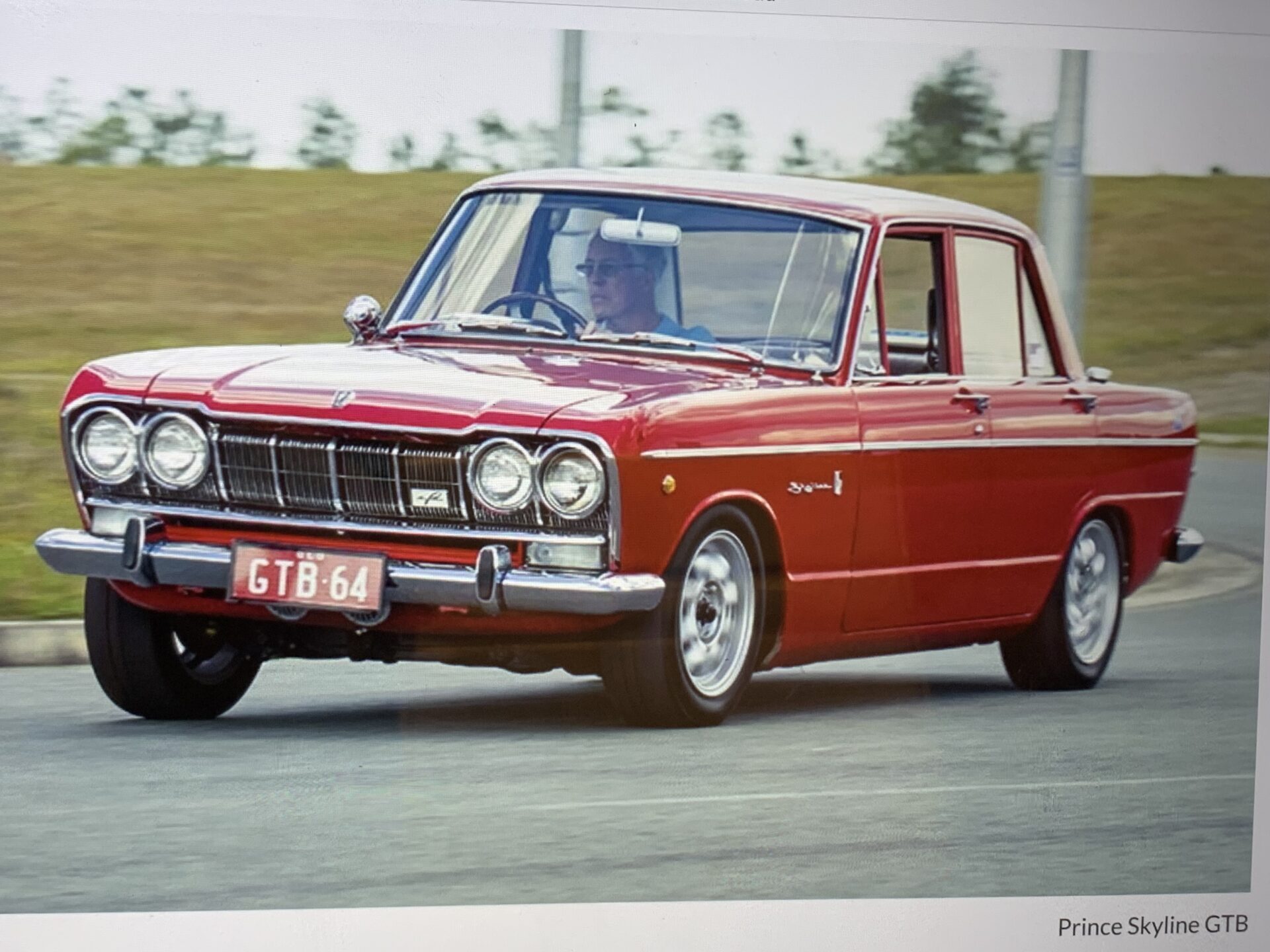 The Skyline creator was Shinichiro Sakurai and he wished to capture the GT 2 class win at that year’s Japanese Grand Prix.  He shoehorned a Prince Gloria G7, 2 litre OHC straight six (of Mercedes design) into the engine bay of a base Skyline 1500 4 Cylinder.  The nose was lengthened 200 ml at the cowl to accommodate this new engine.  Other additions were a 5-speed gearbox, 3 triple Webbers, a long- range fuel tank, a competition dash and a beautiful race steering wheel.  FAST!